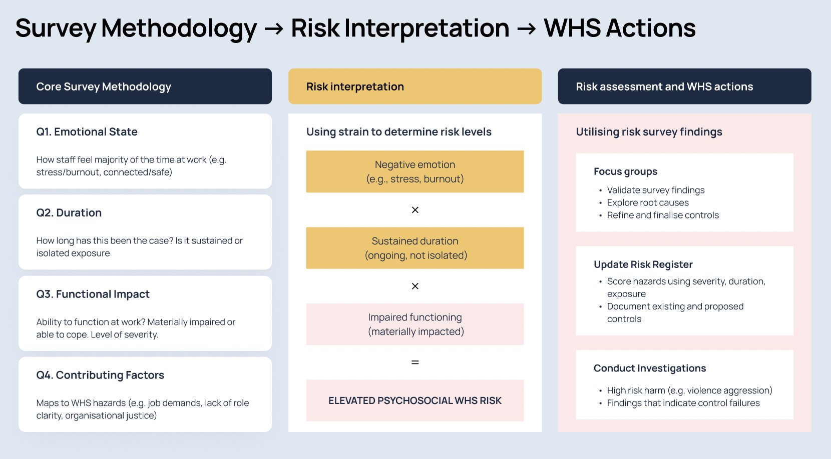 - support defensible, proportionate WHS decision-making